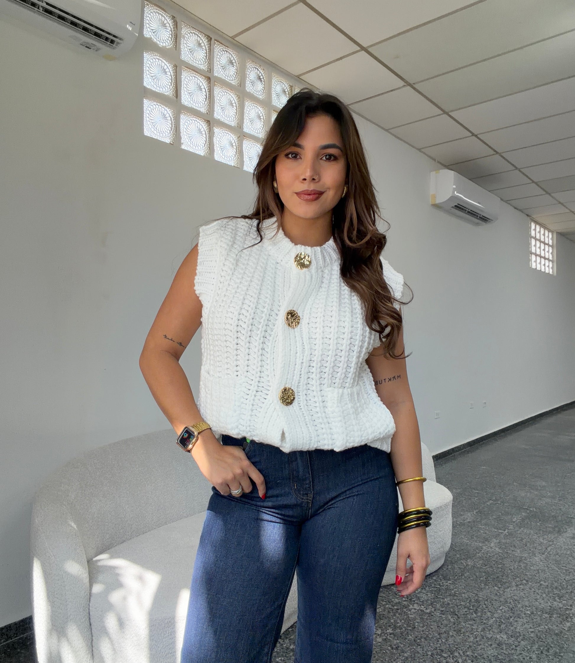 Corre al size. Modelo usa médium.